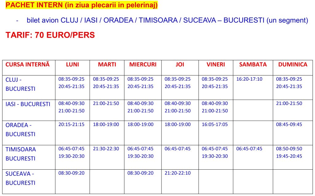 TARIF: 570 EURO + 1015 USD/pers in camera dubla, grup minim 40 plătitori